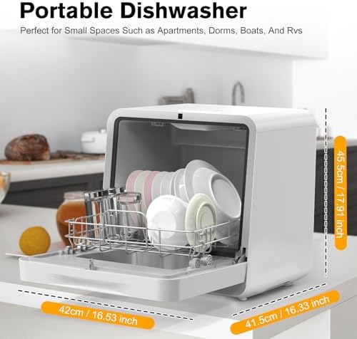 Portable Countertop Dishwasher,7 Washing Programs Mini Dishwashers with 5 L Built-in Water Tank & 360° Dual Spray,Air Dry Mini Dishwasher With Baby Care,Apartments & RVs (White)