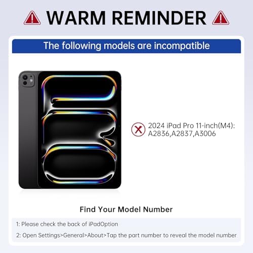 - 【Widely compatible】: Tolpeiksoy this high-quality tablet keyboard cover can perfectly adapt to the following models:2025 M3 iPad Air 11-inch (A3266, A3267, A3270), 2024 M2 iPad Air 11-inch (A2902, A2903, A2904), 2022 iPad pro 11 inch 4th generation (A2435, A2759, A2761, A2762), 2021 iPad pro 11 inch 3rd generation (A2377, A2301, A2459, A2460), 2020 iPad pro 11 inch 2nd generation (A2228, A2068, A2231), 2018 iPad pro 11 inch 1st generation (A1980, A2013, A1934, A1979), 2022 iPad air 5th generation (A2588, A2589, A2591), 2020 iPad air 4th generation (A2072, A2316, A2324, A2325).