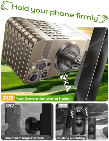 • [Super Strong Magnets]: The magnetic phone holder for golf cart features 24 powerful N56 magnets that precisely aligned to MagSafe in iPhone 12–17 series - holds your phone securely so it won't slip or fall, no constant adjustments needed