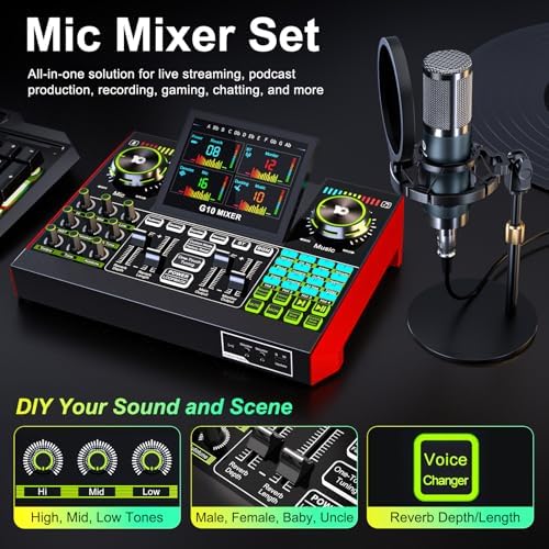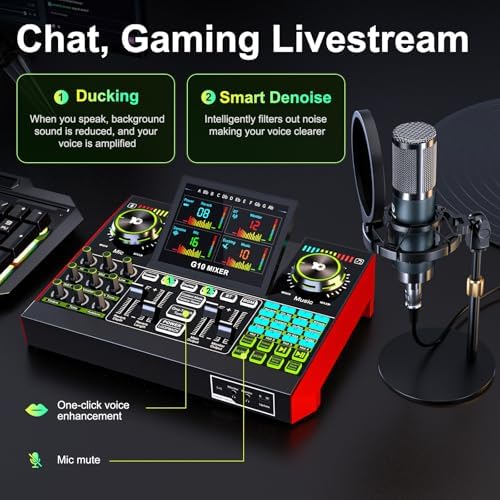- 【Podcast Equipment Bundle】The podcast microphone bundle includes everything you need for professional-quality audio creation: a 3.5mm condenser microphone with a disk bracket and the G10 Sound Board. Perfect for podcasters, gamers, streamers, and content creators who want an all-in-one solution for mixing, recording, and streaming.