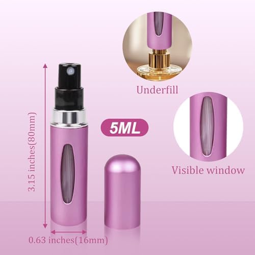 - 12-Pack 5ml Mini Travel Size:Compact 5ml/0.2oz refillable perfume atomizers (3.15x0.63 inches) fit effortlessly in pockets, purses, or luggage—perfect for travel, work, or on-the-go touch-ups. Ensuring your favorite fragrance lasts through trips or busy days