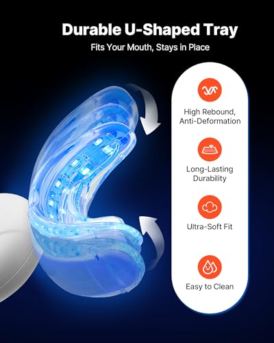VEVOR Teeth Whitening Kit with LED Light, 32 LED Accelerator Lights, Whitening Strips, Pens and Gel Syringes, U-Shaped Tray, Wireless Portable Kit Fast and Effectively Removes Stubborn Stains