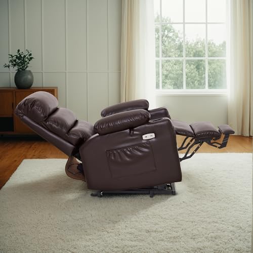 MCombo Electric Power Lift Recliner Chair with Massage and Heat for Elderly, 350 lbs, 2 Side Pockets, and Cup Holders, USB Ports, Faux Leather LC001 (Dark Brown)