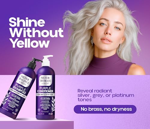 Sulfate Free Brass Toning Purple Shampoo and Conditioner Set for Gray, Blonde, Silver & White Hair – Neutralizes Brassy Tones, Boosts Brightness, Protects Color, Made in USA, 16 fl oz Each