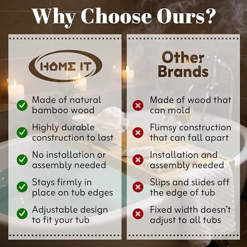 Home It Premium Foldable Bathtub Tray - Bamboo Waterproof Bath Tray for tub Caddy - Wooden Holder for Wine, Book, Soap, Phone, Luxury Gift for Men & Women - Expandable, Fits Most Tubs in Bathroom