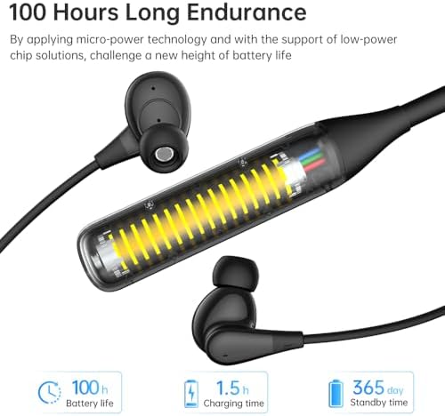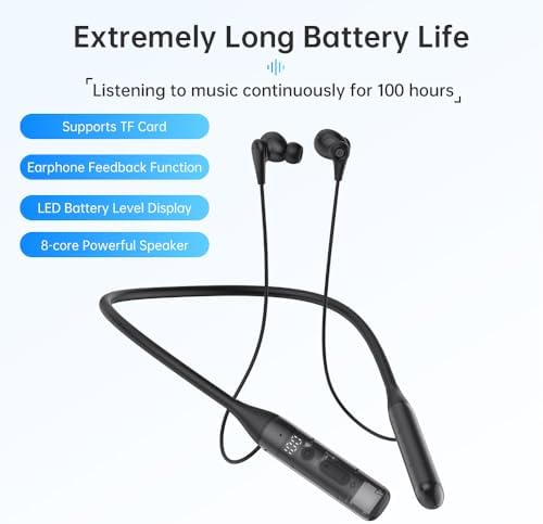 - 【100 Hours Playback】: The wireless neckband headphones are equipped with a lithium-ion large-capacity battery and a low-power smart chip, with a total use time of more than 100 hours and a high battery life to meet the user's power needs. The wireless headphones are also equipped with a display percentage battery and a volume adjustment display, which can always keep an eye on power changes and complete intelligent charging.