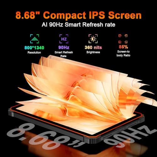 - 📱【Large Tablet with 8.68-Inch 90Hz IPS Display】The Blackview ACTIVE 5 robust tablet features an 8.68-inch IPS display with a resolution of 800x1340, protected by Panda MN228 toughened glass for scratch and impact resistance. Its 90Hz AI refresh rate optimizes both smoothness and energy efficiency, while five blue light modes ensure superior visual comfort. It supports Glove Mode 2.0 for operation while wearing gloves and Widevine L1 for HD streaming on platforms like YouTube and Hulu.