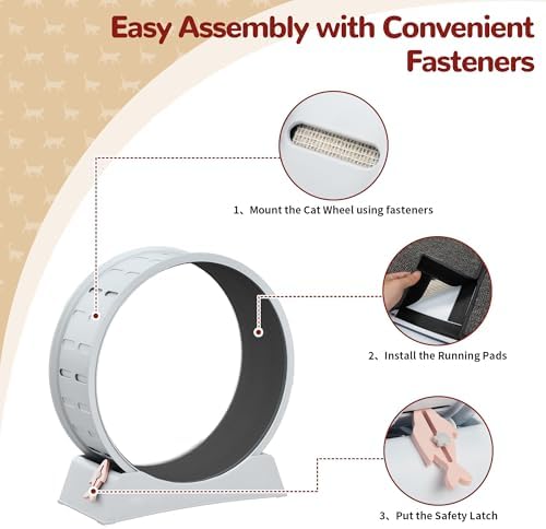 - 【Easy Assembly with Manual】: With snap-on installation, the cat treadmill is super easy to set up without any tools. A cat teaser is added for you to train your furry friend to use this exercise wheel easily. Overall size: 27.6"L x 13.4"W x 34"H.