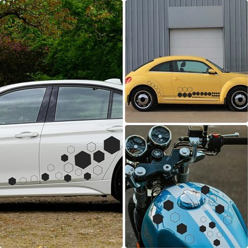 - UNIVERSAL SIZE: Size: 77.7cm (30.59 inches) * 20.3cm (7.99 inches). Honeycomb graphic sticker consists of 52 hexagons of different sizes. Suitable for all cars, trucks, motorcycles, SUVs, RVs and other smooth surfaces. You can DIY your own stickers according to your needs to make the appearance of your car look more fashionable