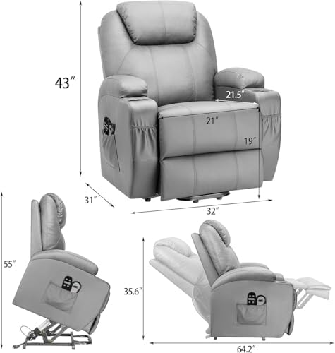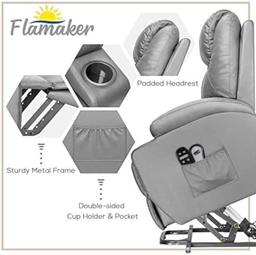 Flamaker Power Lift Recliner Chair with Vibration Massage for Elderly Ergonomic Lounge Chair Classic Single Sofa with Cup Holders Side Pockets for Living Room (Gray)