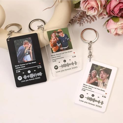 Custom Spotify Keychain with Picture Personalized Acrylic Music Plaque with Scannable Song Code Album Cover Gift for Couple, Boyfriend