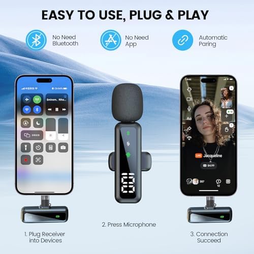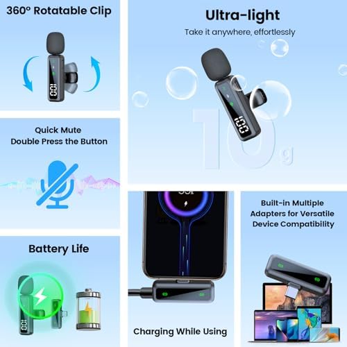 - 👌 Easy Clip-On Design – Lightweight and portable lavalier microphones that clip easily to your shirt. Enjoy hands-free, wireless freedom for any recording scenario.