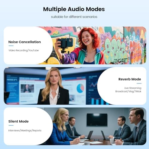 - 🎬 Crystal Clear Sound – Equipped with intelligent noise reduction and real-time auto-sync technology, delivering professional audio quality for videos, live streaming, YouTube, TikTok, and more.