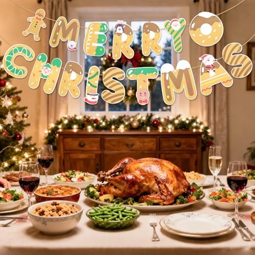 Gingerbread Merry Christmas Banner, Vintage Christmas Hanging Ornaments Decor Ginger Bread Garland for Xmas Holiday Fireplace Wall Indoor Outdoor Decoration