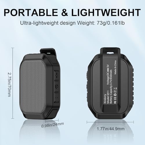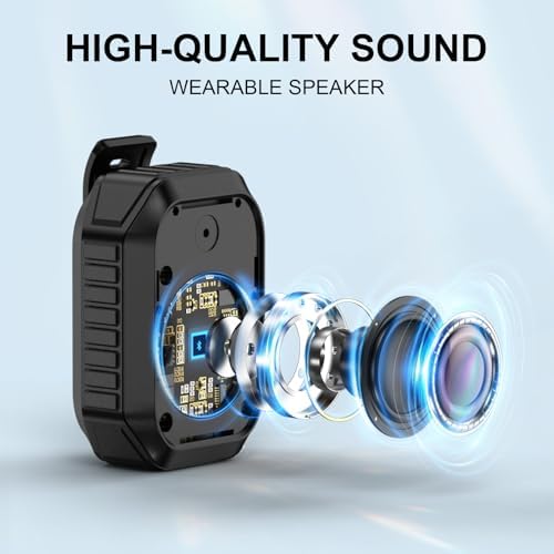 - LIGHTWEIGHT & PORTABLE DESIGN:The wearable bluetooth speaker features a strong clip, allowing you to easily attach it to your backpack, belt, or gear. Its ultra-lightweight design weighs just 73g, making it the perfect companion for enjoying music wherever you go.This product comes with a lanyard that can be attached to your wrist or backpack. Compact and elegant, it fits easily into your bag