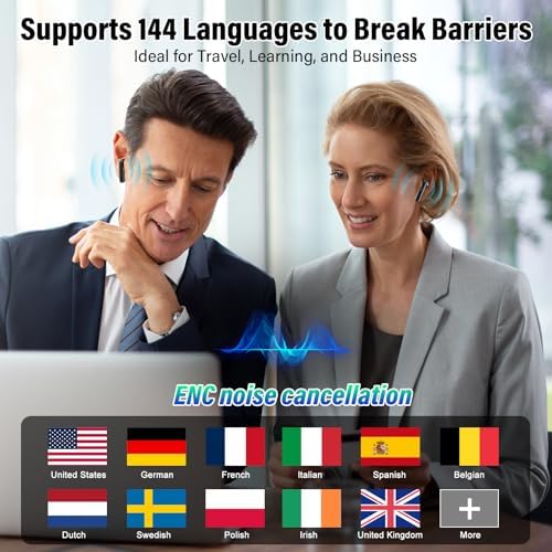 - Advanced Bluetooth 5.4 & App Integration: These translating earbuds use Bluetooth 5.4 for a fast, stable connection with extended range — perfect for travel and multilingual communication. Improved signal stability boosts efficiency. Scan the activation code in the manual to download the “Nebula” app and unlock extra smart features. (Scanning the activation code once permanently enables all app functions.)