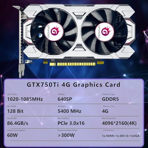 GTX 750Ti 4GB Graphics Card GDDR5 Gaming Video Card 128bit Direct X12 640SP, PCI Express 3.0x16 Interface, DVI-D, HDMI, VGA, Dual Fan, Low Power GPU for Working Gaming