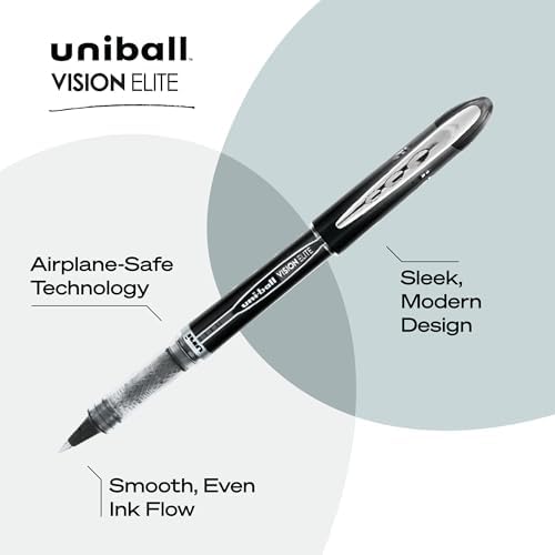 Crea ideas tan vívidamente como se pueda imaginar con los bolígrafos rollerball Vision Elite de uni-ball que presentan una punta de acero inoxidable resistente a la flexión y una bola de carburo de tungsteno. Los bolígrafos con tapa ofrecen líneas suaves y intensas con una definición sin igual, útiles para tomar notas, hacer listas, firmar cheques y documentos legales, e incluso embellecer de manera única proyectos de escritura creativa. La innovadora tecnología de tinta uni Super atrapa eficazmente la tinta de gel en el papel, produciendo documentos resistentes al fraude, al desvanecimiento y al agua que resisten el lavado o el blanqueamiento de cheques. Estos bolígrafos Vision Elite tienen un diseño especial que resiste las variaciones de presión de la cabina sin gotear, haciéndolos útiles para los viajeros. El sistema exclusivo de tinta Uni-Flow asegura una experiencia de escritura consistente y deliciosamente fluida, y una ventana translúcida asegura que no te quedes sin tinta inesperadamente. Expresa tu estilo de firma con el diseño elegante y moderno y el rendimiento de élite del bolígrafo rollerball Vision Elite de uni-ball, sin importar la altitud.