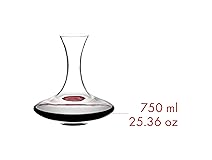43-3/8 ounces at full capacity Crafted from full-lead crystal for clarity and brilliance Mouth-blown in austria by world-renowned glassmakers Exposes wine to oxygen for more developed bouquet and fuller flavors Washing by hand recommended Decanter size: 8.07Lx8.86Wx8.86H (Inches)