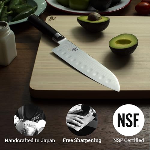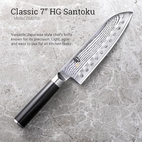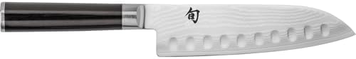 Shun Classic 7" Hollow Ground Santoku Knife, Handcrafted Japanese Cutting Knife, VG-MAX Core with Damascus Stainless Steel Cladding, Pakkawood Handle
