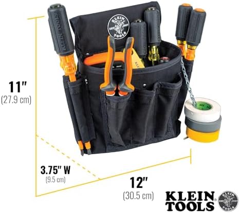 Klein Tools 5719 Tool Pouch, PowerLine Series Utility Pouch Fits Tool Belts up to 2.5-Inch, Strong Rivet Reinforced Stitching, 18-Pocket