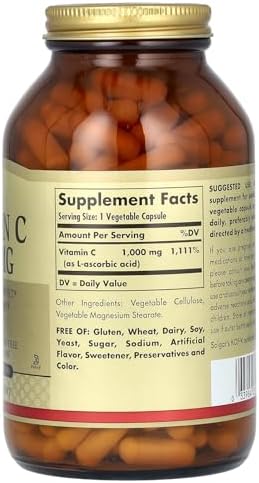 - No OGM y Sin Gluten; Las Cápsulas Vegetales de Solgar Vitamina C 1000 mg son adecuadas para veganos; Libre de: gluten, trigo, lácteos, soja, levadura, azúcar, sodio, sabor y edulcorante artificial