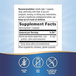 Nature's Way Boron provides bone support.* Supports calcium, magnesium, phosphorus metabolism.* With 3 mg boron per serving. Adults take 1 capsule daily, preferably with food. Gluten free. No salt, wheat, soy, corn, dairy, or artificial colors, flavors, or preservatives. At Nature's Way, we believe nature is the ultimate problem solver. For over 50 years, we have looked to the natural world for inspiration. Our quality vitamins and supplements are formulated to help you find your way to wellness.