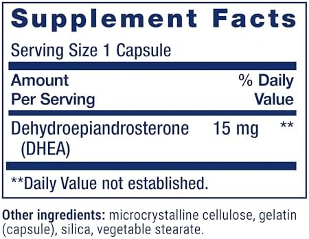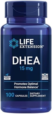 Life Extension DHEA 15 mg - Para equilibrio hormonal, apoyo inmunológico, masa muscular magra, antienvejecimiento, salud ósea y sexual - Apoya la memoria y el estado de ánimo - Sin gluten, sin OMG - 100 cápsulas
