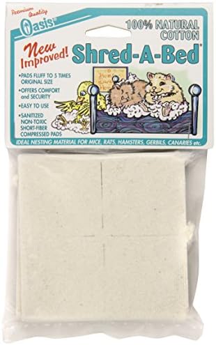 Kordon Oasis shred A bed is a perfect natural nesting material for mice, rats, gerbils and hamsters in a simple easy to use form. Features 100-percent natural ingredients. Contains handy 3-inch length by 6-inch width by 3/16-inch height pads of compressed cotton fiber and wood chips. Includes 6-pieces per pack.