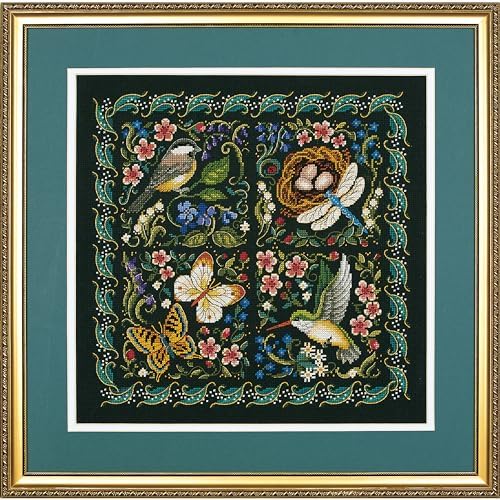 Some of nature's most beautiful creations—birds, butterflies, and blooms—are featured on this advanced counted cross stitch for adults. Perfect as a multi-month project that you can proudly display once complete, this counted cross stitch set contains presorted cotton and metallic thread, 14 count black Aida, needles, and instructions, and measures 14" x 14" when complete. Copyright Pamela Silin-Palmer 2001.