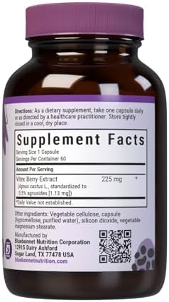 Bluebonnet Nutrition Vitex Berry Extract, Women's Health*, Non-GMO, Vegan, Kosher Certified, Gluten-Free, Soy-Free, 60 Vegetable Capsules, 60 Servings