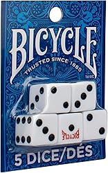 - This Bicycle Dice set includes 5 Dice, and is ideal for Poker or other games. Having the perfect hand isn't just about the cards! accessorize your card game with these classic Bicycle branded Dice. This product has a two year warranty against defects in materials and workmanship from the date of original purchase on Amazon when purchased directly from The United States Playing Card Company (“USPC”) or an authorized distributor or reseller of USPC.