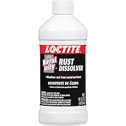 - Loctite Naval Jelly Rust Dissolver is the original rust treatment formula that has been used for over 40 years. It removes rust from metal surfaces such as iron, steel, and other ferrous metals while also removing bluing from steel. Loctite Naval Jelly Rust Dissolver is a heavy-duty formula that’s ideal for removing rust on heavily rusted items like iron railings, barbeque grills, automobiles, patio furniture, tools, antiques, mailboxes, lawn mowers, bicycles, lamp posts, and more. Easy to use, Loctite Naval Jelly Rust Dissolver can be applied on metal surfaces by brushing or spraying and works in 5 to 10 minutes for quick and convenient performance. Loctite Naval Jelly Rust Dissolver is a water-soluble formula and cleans up easily with water. When something rusts, repair, don't replace it with Loctite Naval Jelly Rust Dissolver.