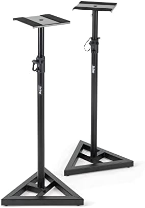 Sold in pairs, our SMS6000-P Studio Monitor Stands reliably support heavy speakers. Their adjustable height enables precise speaker placement to optimize sound in a variety of spaces. Padding on the speaker platforms provides a nonslip grip, protects speaker cabinets, and dampens vibration. The wide bases provide exceptional stability and offer two floor-contact options to accommodate hard surfaces or carpets.