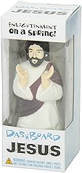 - Put this 4-1/2" (11.4-cm) tall Dashboard Jesus in your car and he'll be your co-pilot. Even though he may guide you through the valley of gridlock, he alone cannot get you into the carpool lane. Each hard vinyl Jesus figure sits atop a metal spring with an adhesive base. If you don't have a car, stick him up somewhere that you could use a little peace, serenity or forgiveness.