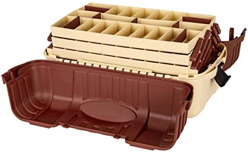 Flambeau Outdoors 2059 Hip Roof 7-Tray Fishing Tackle Box - Large Portable All-Weather Fishing Lure Organizer, 61 Compartments, Maroon/Tan