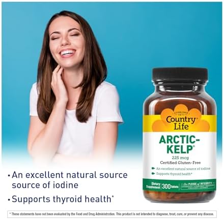 Country Life Arctic-Kelp – Natural Iodine Supplement for Thyroid and Immune Support – Vegan, Gluten-Free, 225 mcg – Ideal for Thyroid Health, Hypothyroidism, and Adrenal Support, 300 Tablets