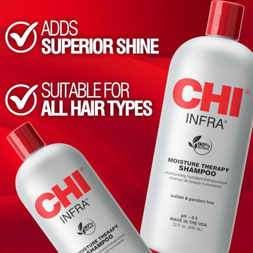 CHI Infra Shampoo, Gently Cleanses Scalp & Hair, Hydrating & Nourishing For All Hair Types, Designed for Heat Damaged Hair, Sulfate, Paraben, & Cruelty-Free, 32 Oz