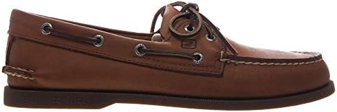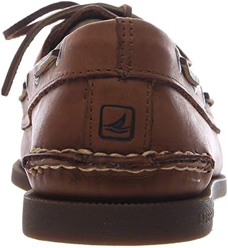 - El eje mide aproximadamente la parte superior baja desde el arco El tacón mide aproximadamente 0.75 pulgadas. Zapato náutico de cuero con punta cosida en mocasín, ojales resistentes a la corrosión y cuello ranurado