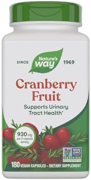 Nature's Way Cranberry Fruit, Cranberry Supplements, Supports Urinary Tract Health*, 930 mg per 2-Capsule Serving, 180 Capsules (Packaging May Vary)