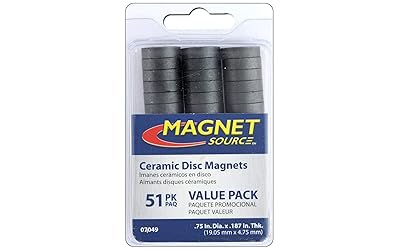 - 51-pc. ceramic disc magnet value pack. Each measures 3/4in. dia. x 3/16in. thick. One of our most popular sizes of ceramic disc magnets in a money saving value pack of 51 pieces.
