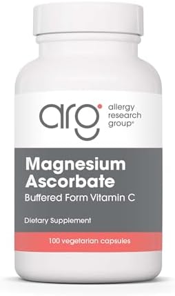 Allergy Research Group Magnesium Ascorbate Supplement - 1000mg Buffered Vitamin C, Immune Support, Magnesium Powder, Vegetarian Capsules - 100 Count