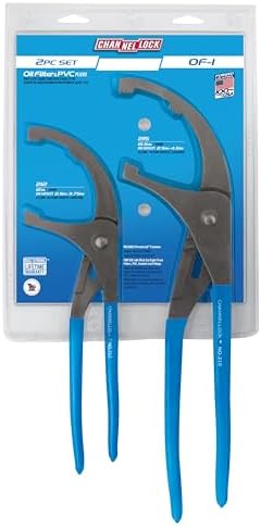 The CHANNELLOCK® OF-1 2-Piece Oil Filter/PVC Pliers Set combines the strength and reliability of our iconic Tongue and Groove Pliers with the special needs of PVC and oil filters. The 212 has a jaw capacity of 2-1/2 to 3-3/4 In. The 215 has a jaw capacity of 2-1/2 to 4-1/2 in. These pliers remove stubborn oil filters from cars, trucks, motorcycles, ATVs and lawn and garden equipment. CHANNELLOCK® Oil filter/PVC Pliers are made in USA and forged from high carbon steel that is specially coated for ultimate rust prevention.