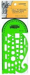 Features many useful symbols and geometric shapes Includes a 3" protractor and irregular curve Features 4" scale with holes to use as a compass Circles, squares, triangles and hexagons from 1/16" to 1/2" Made in USA