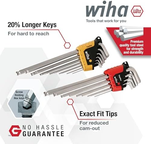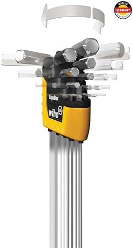 Wiha 66992 twenty two piece combination MagicRing screw holding long ball end hex L-key set in ProStar holder. Includes metric sizes standard ball 1.5, 2.0, 2.5, with ring: 3.0, 4.0, 5.0, 6.0, 8.0, 10mm Inch sizes standard ball .050, 1/16, 5/64, 3/32, 7/64, with ring 1/8, 9/64, 5/32, 3/16, 7/32, 1/4, 5/16, 3/8.