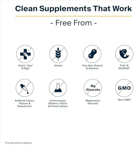 - Clean Formula: Free from gluten, dairy, peanut, tree nut, fish, shellfish, soy, sesame, and egg Non-GMO Made without artificial fillers, coatings, binders, or colors