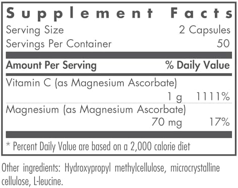 Nutricology Magnesium Ascorbate Supplement - 1000mg Buffered Vitamin C, Immune Support, Magnesium Powder, Vegetarian Capsules - 100 Count