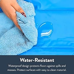 WATER-RESISTANT SPLASH PROTECTION: Designed to catch spills and splashes, this durable splash mat is perfect for use under sensory tables, water tables, or messy activity stations. LARGE SURFACE AREA: Measuring 50" x 72", this mat offers generous coverage for a variety of classroom, daycare, or homeschool environments. Ideal for painting, arts and crafts, or hands-on learning. EASY TO CLEAN: The 0.85 mm thick, wipeable material makes cleanup quick and hassle-free. Simply use mild soap and water to keep your activity space tidy. VERSATILE CLASSROOM ESSENTIAL: Use this splash mat as a protective floor covering during messy play, snack time, or art projects to protect carpets and floors. DIMENSIONS & WARRANTY: Measures 50"W x 72"L x 0.85 mm thick, backed by a 2-year warranty. This water-resistant mat is suitable for all ages and a reliable addition to any learning or play space.