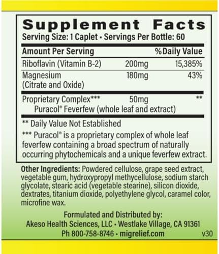 - Proven ingredients - formulated by migraine supplement pioneer. Based on scientific evidence, Akeso's Chief Scientific Officer Curt Hendrix was the first to discover the unique combination of Magnesium, Riboflavin (Vitamin B-2) and Puracol Feverfew for migraine sufferers for which he received two United States patents.