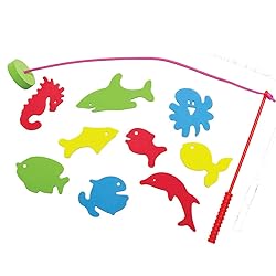 - Toss these friendly, "Wet and Stick" soft sea creatures into the water, attach the bait, cast your line and see what you catch. Create fun games to encourage hand eye coordination, creativity, team work and shape and color recognition. Set includes 56 pieces.
